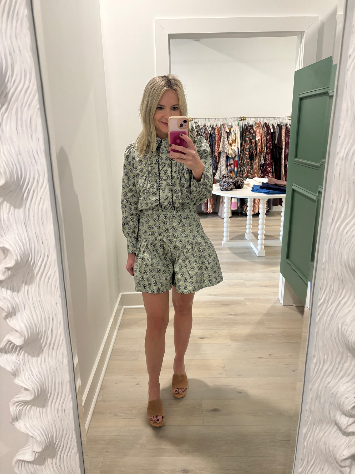 Willa Shorts in Navy Bird Block by Hunter Bell