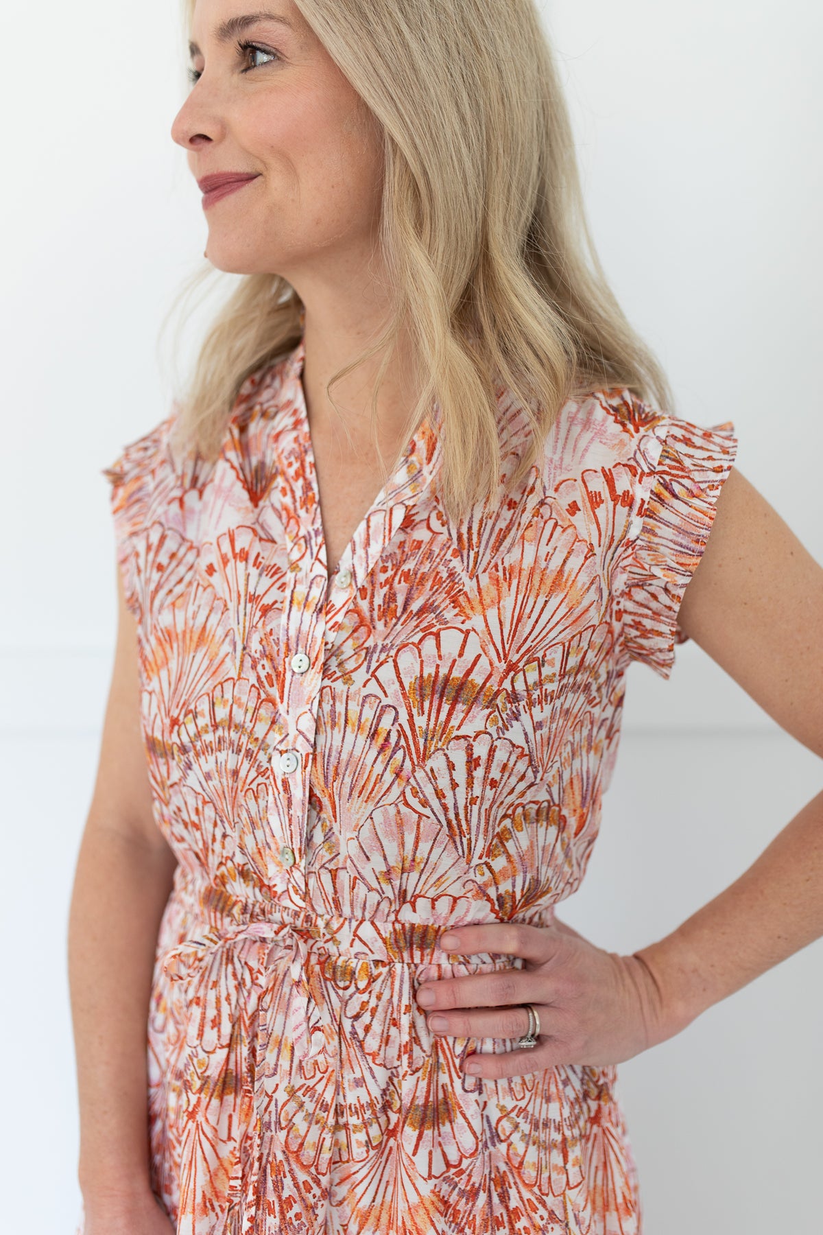 Ruffle at neck and sleeve