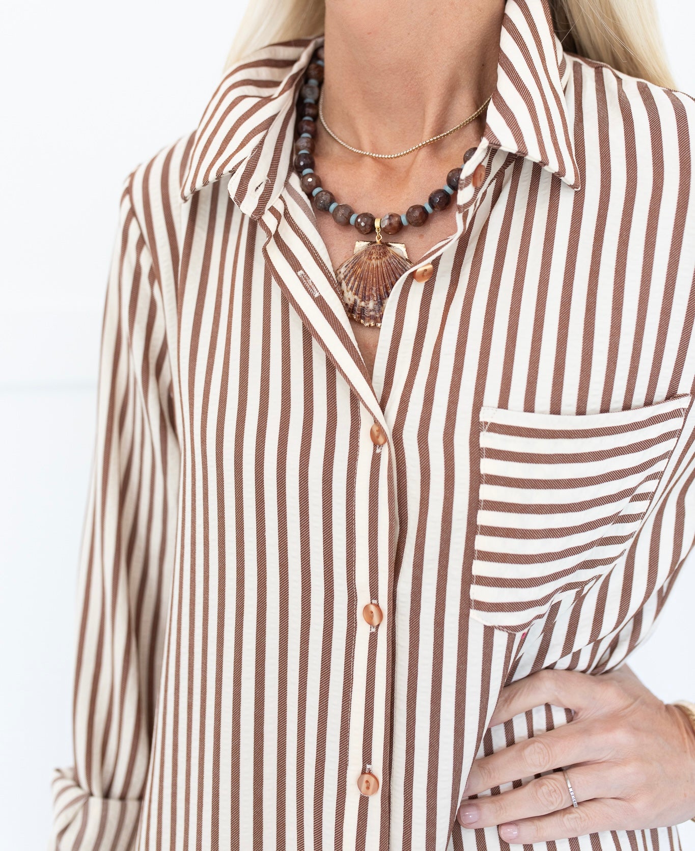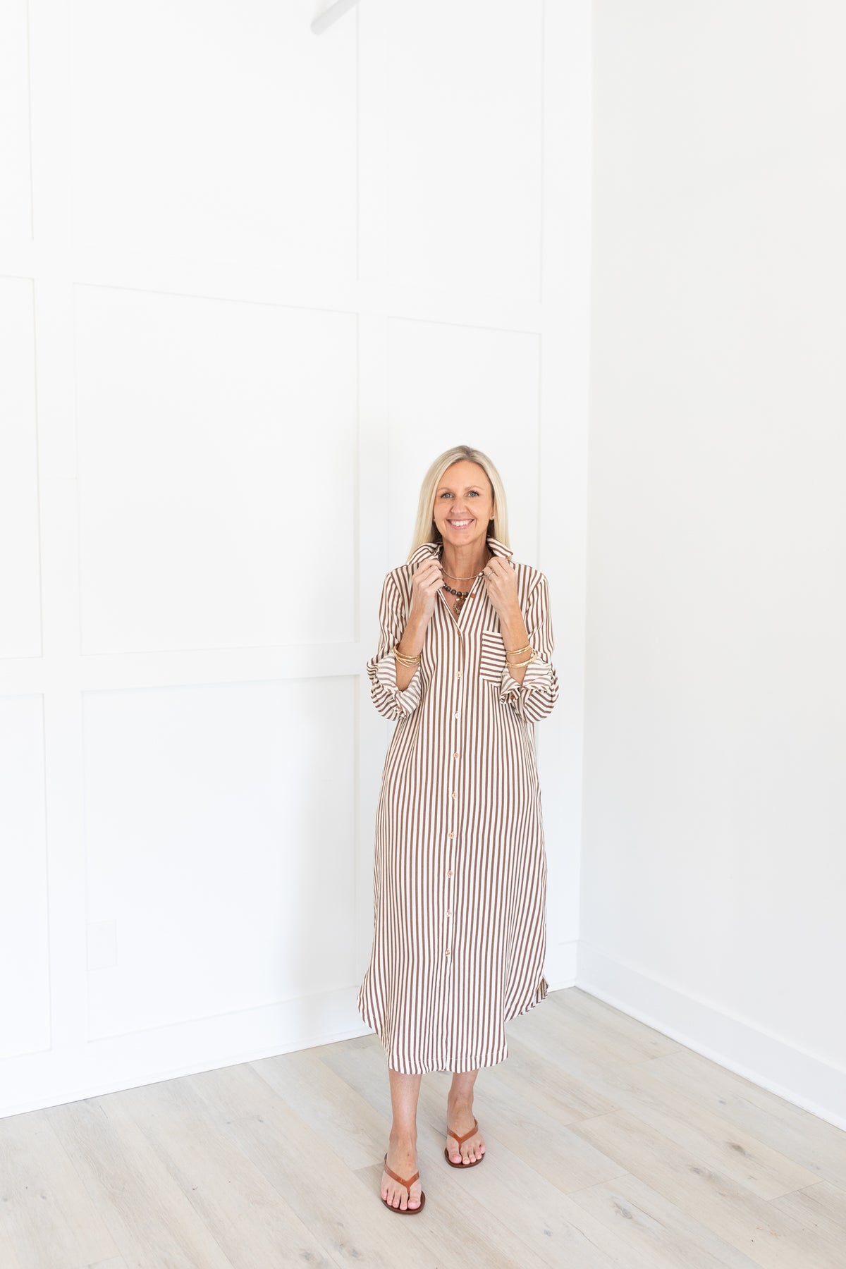 Brown and Ivory Striped Collared Dress