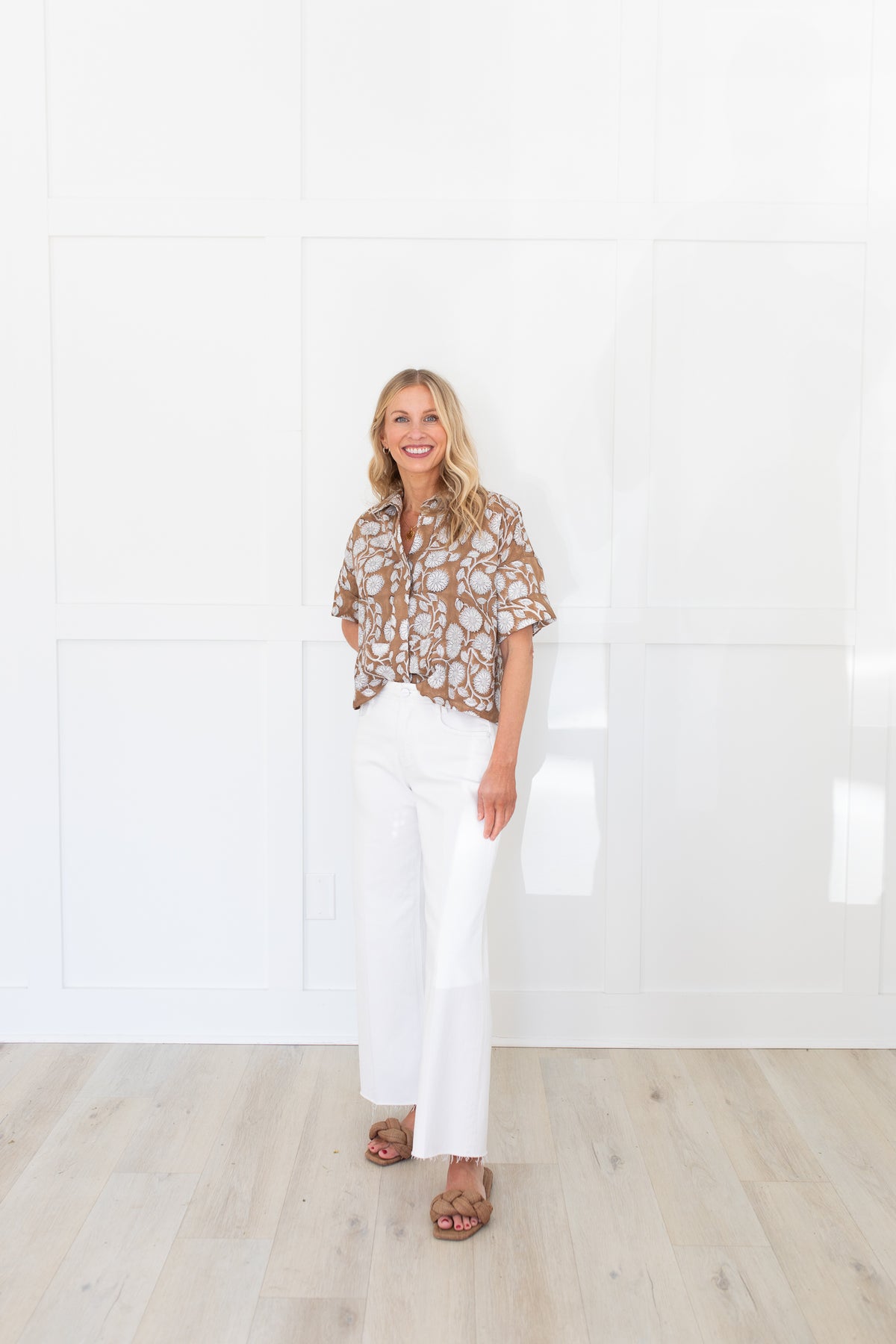Eleanor Top in Brown and White Floral