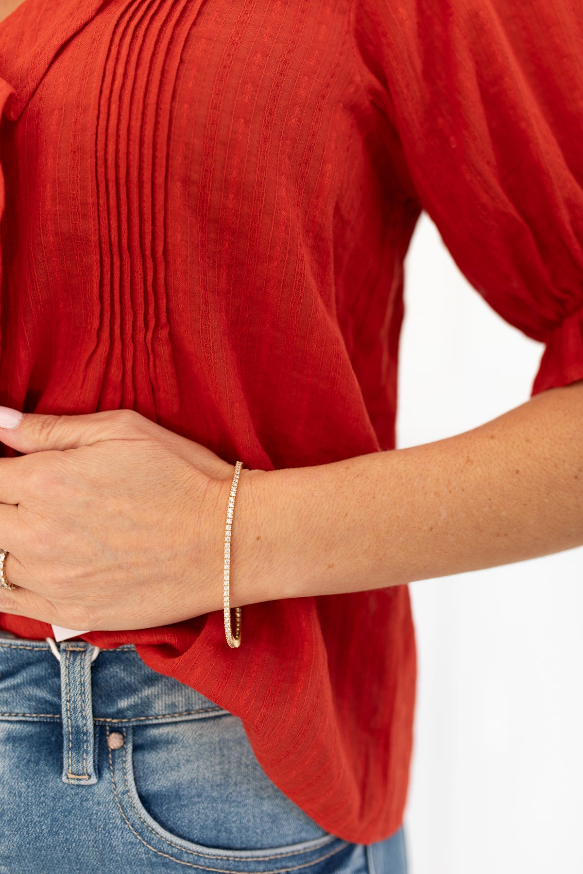 Woven Cotton Buttondown V-Neck Short Sleeve Top With Ruffle Detail