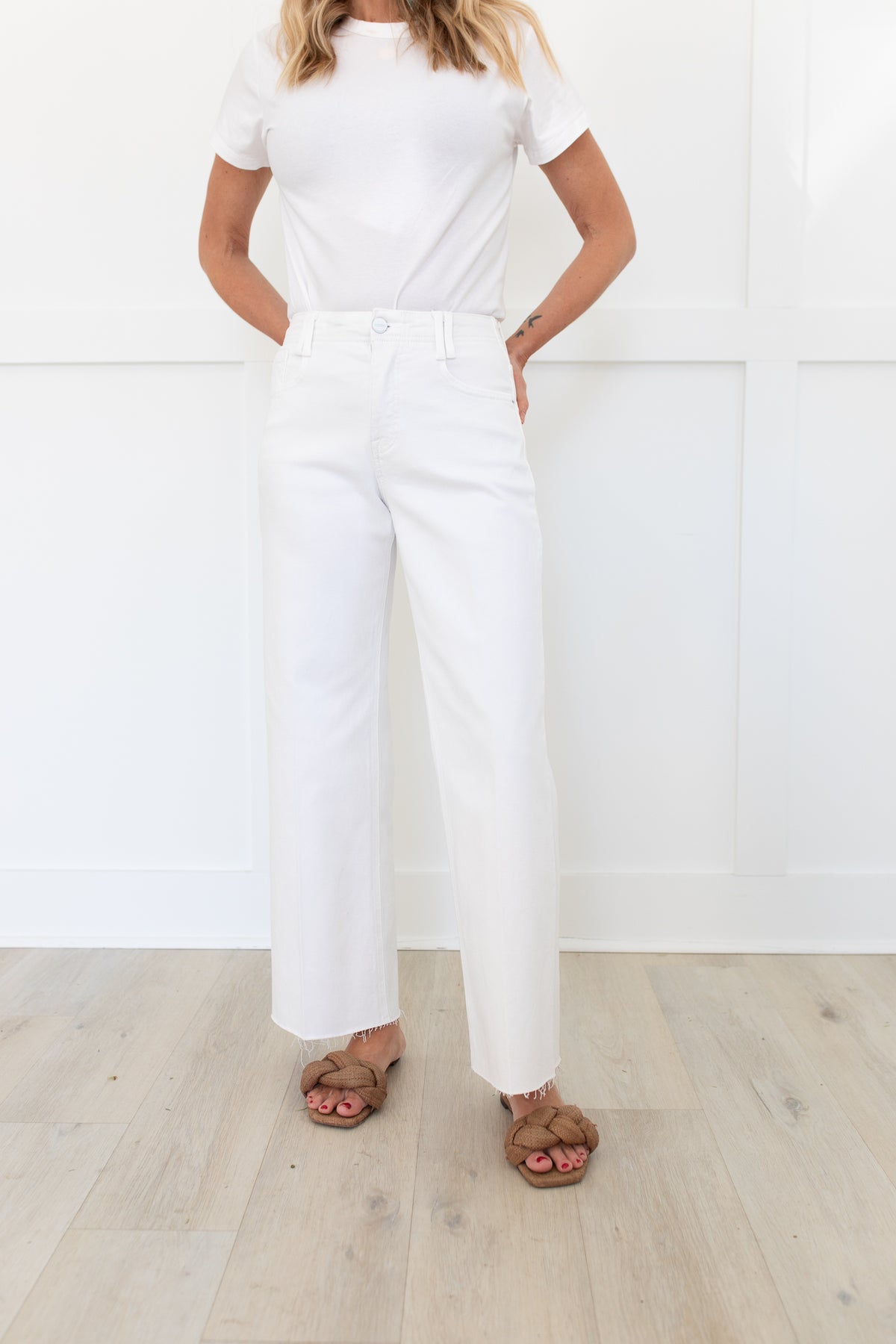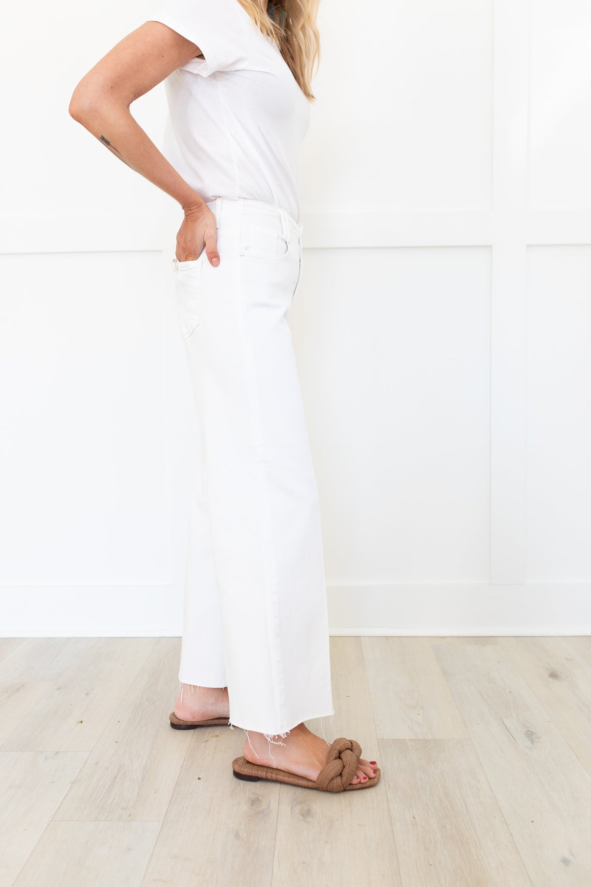 White High Rise Ankle Wide Leg Denim with Crease Detail